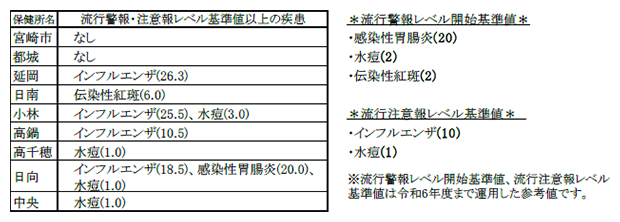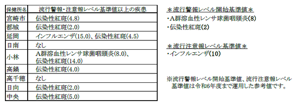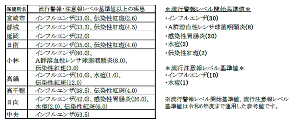 保健所別 流行警報・注意報レベル基準値以上の疾患