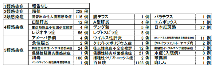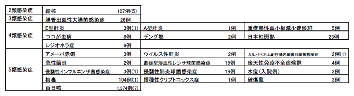 - 5類感染症:カルバペネム耐性腸内細菌目細菌感染症1例、侵襲性インフルエンザ菌感染症1例、梅毒1例、百日咳7例。