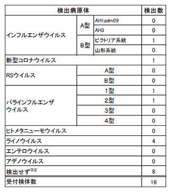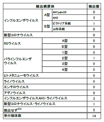 ※2 左記のいずれのウイルスも検出されなかった検体数を計上