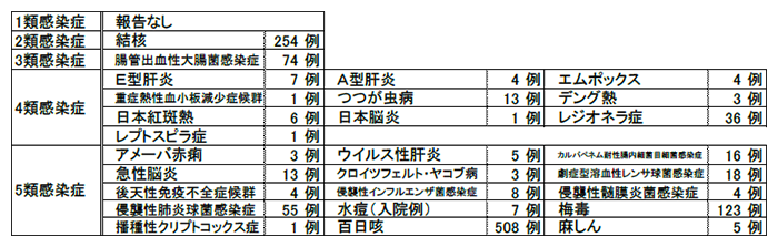 全数報告の感染症(48週までに新たに届出のあったもの)