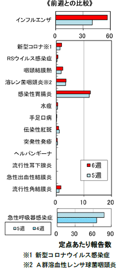 また、第5週の急性呼吸器感染症の報告総数は2,190人(定点当たり78.2)で、前週比119%と増加した。
