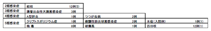 - 5類感染症:水痘(入院例)1例、百日咳1例。
