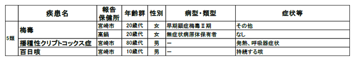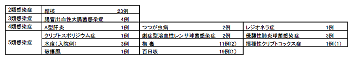 - 5類感染症:梅毒2例、播種性クリプトコックス症1例、百日咳1例。