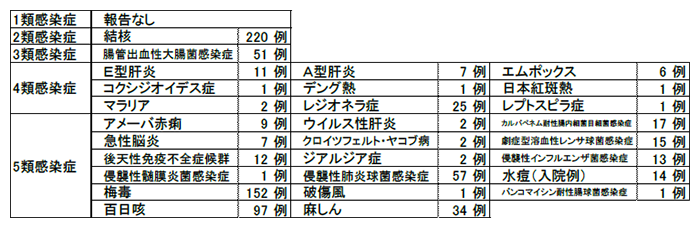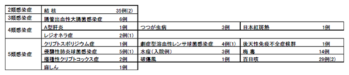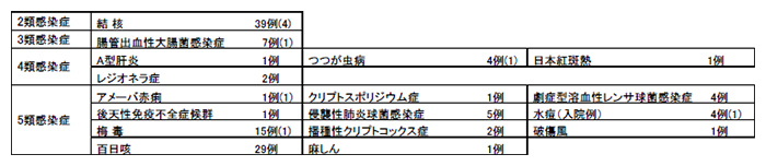 - 2類感染症:結核2例。