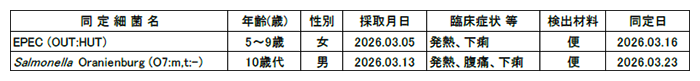 - 3類感染症:腸管出血性大腸菌感染症3例。