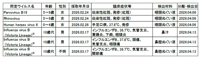 病原体検出情報(衛生環境研究所微生物部)