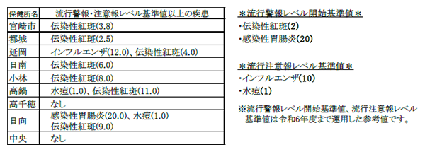 保健所別 流行警報・注意報レベル基準値以上の疾患
