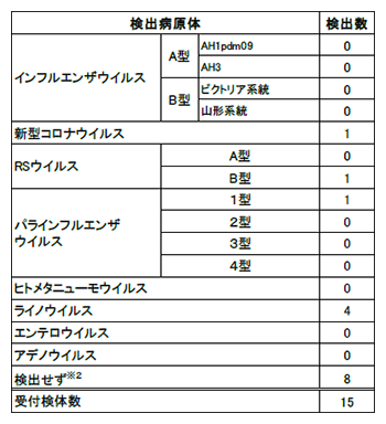 ※2 左記のいずれのウイルスも検出されなかった検体数を計上
