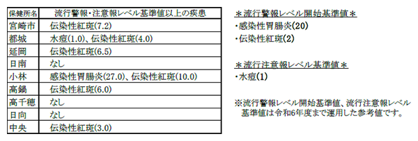 保健所別 流行警報・注意報レベル基準値以上の疾患