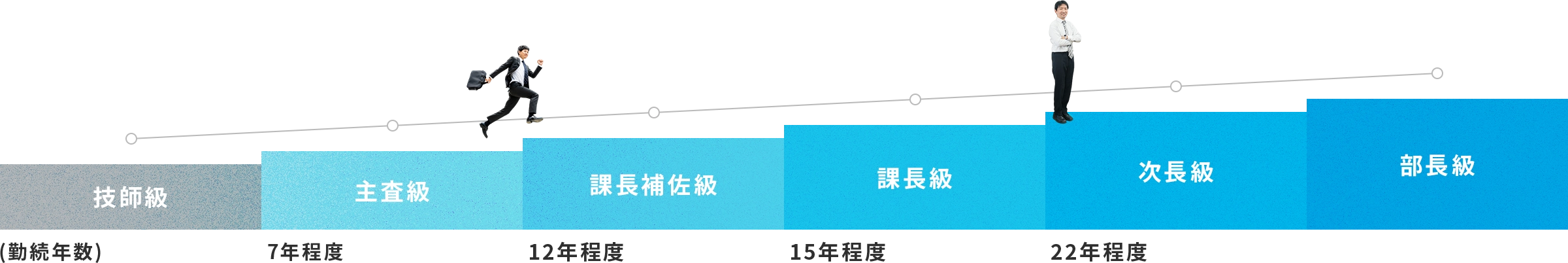 職位が上がるにつれ、管理職としての組織マネジメント、幹部職員としての方針決定等も行うことになり、責任が大きくなる分、やりがいも大きくなっていきます。