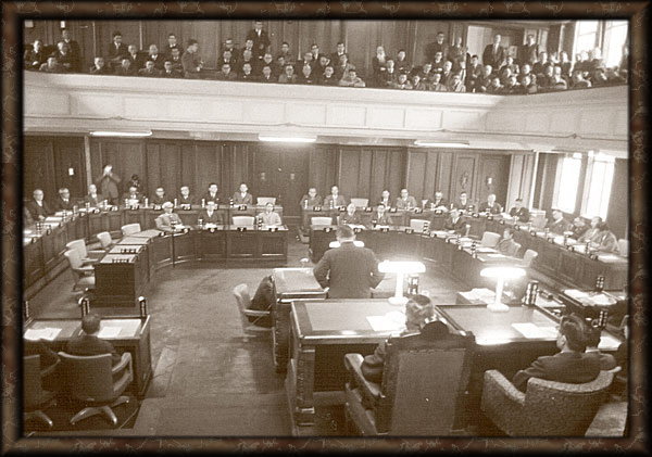 県庁本館2階(現在の講堂)にあった旧県議会議場における採決の様子です。この2月8日の本議会では、西都市などの町村合併議案が満場一致で可決され、中之又地区を除く東米良村、三財村、西都市の合併と中之又地区、木城村の合併が決まりました。このことにより、本県は8市26町16村の体制になりました。(昭和37年)