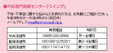 ![]() ・夫婦のいずれかが県内にお住まいで、不育症と診断された方 血液の凝固異常(血栓ができやすい)に対する治療費 一回の妊娠期間につき8万円まで助成 |