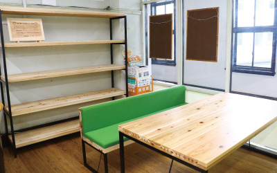 スギの無垢材や中空パネルを使用した家具など、県産材をふんだんに使用しています。
