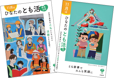 女性も男性も、ともにいきいきと活躍できる宮崎づくりを推進するため、令和7年から、新たに11月を“ひなたの「とも活」推進月間“と定めました。職場での女性活躍と、男女が家事や育児を分かち合う「とも家事」を一体で推進しています!