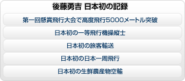 後藤勇吉は日本初の民間パイロット第一号として、飛行機の可能性を見出し、今日の航空界へとつながる偉大な足跡を数多く残しました。