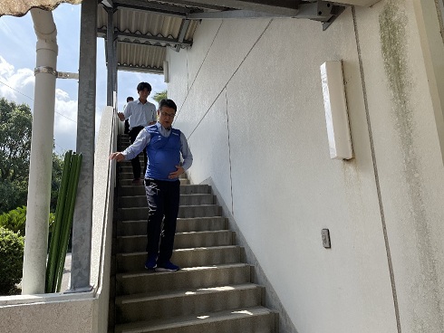 授業で知事は他の生徒とともに妊婦体験ジャケットを着用し、階段の上り下りや靴下の着脱などを通して、生徒と一緒に妊婦さんにどのようなサポートが必要か話し合いました。
