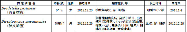 病原体情報(衛生環境研究所微生物部 平成25年1月13日までに検出)