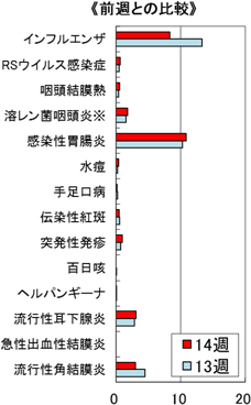 全数報告の感染症(14週までに新たに届出のあったもの)