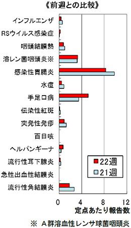 全数報告の感染症(22週までに新たに届出のあったもの)