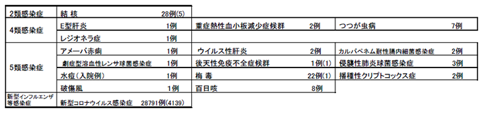 - 5類感染症:後天性免疫不全症候群1例、梅毒1例。