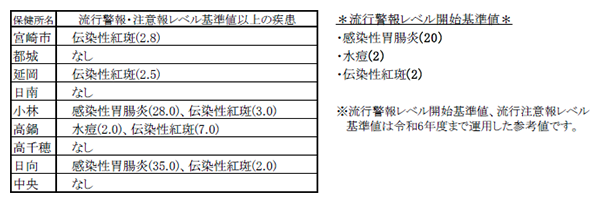 保健所別 流行警報・注意報レベル基準値以上の疾患