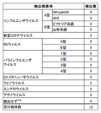 ※2 左記のいずれのウイルスも検出されなかった検体数を計上