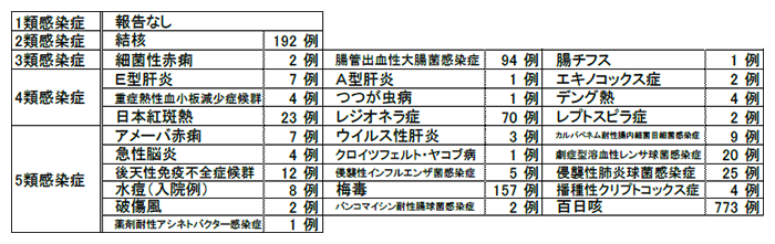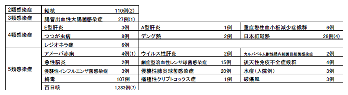 - 5類感染症:アメーバ赤痢1例、百日咳7例。