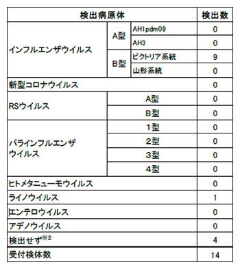※2 左記のいずれのウイルスも検出されなかった検体数を計上