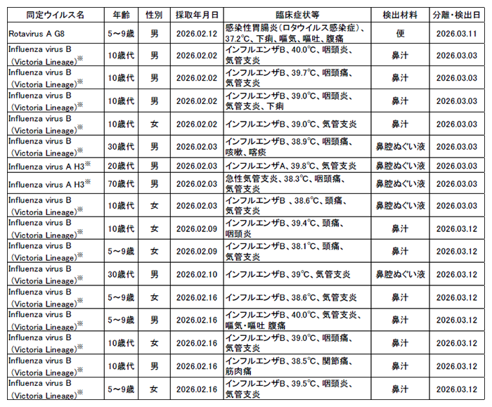 (細菌・ウイルスについては2026年3月16日までに検出分)