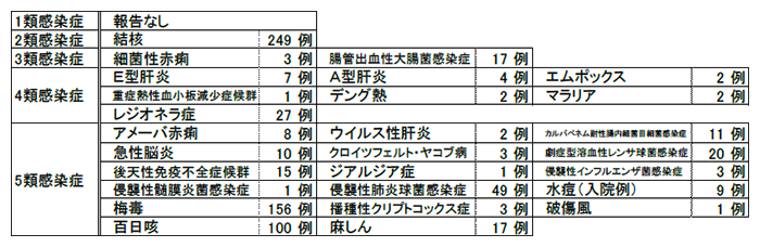 - 1類感染症:報告なし。