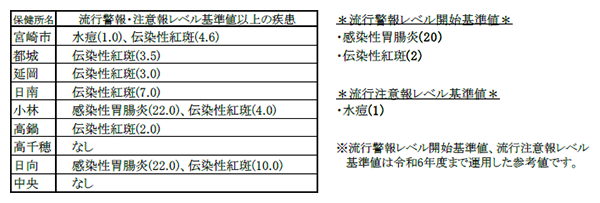 保健所別 流行警報・注意報レベル基準値以上の疾患