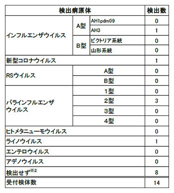 ※2 左記のいずれのウイルスも検出されなかった検体数を計上