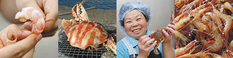 視点を私たちの食卓に転じてみると、地元産の新鮮なエビやカニが並ぶことは残念ながら少ない。スーパーなどの店頭では、エビは外国の養殖エビが主流で、カニもどこか遠い海でとれたものを、食べやすいようにカットして冷凍で送られてきたものが多い。それでも目の前の海には、黒潮の恵みを受けてさまざまなエビ・カニ類がいて、港には毎日、それが水揚げされている。