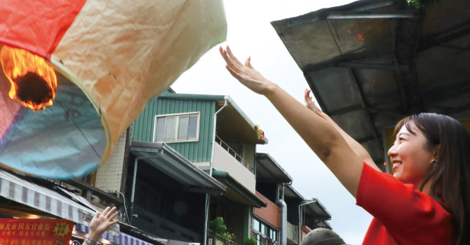 大きなランタンに願いを書いて飛ばしたり、レトロな街並みを堪能できる台湾の人気観光地。