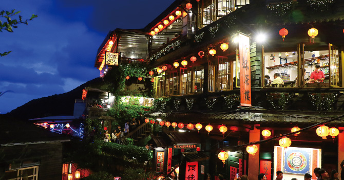 古き良き台湾の街並みと幻想的なちょうちんの明かりに魅せられて多くの観光客が訪れる台湾随一の観光スポット。