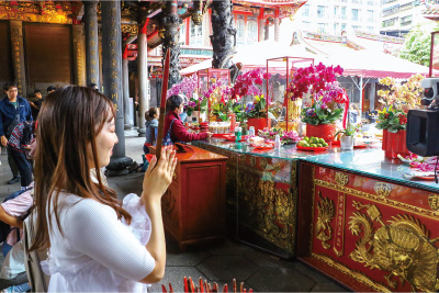 台北最古の寺である龍山寺。豪華絢爛な建築と、人々の熱心な祈りが息づくパワースポット。