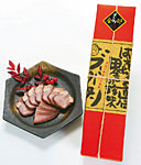 宮崎県産豚のタンを、柚子や生姜などを加えた特製の味噌に漬け込み、燻製をかけた。高級ハムや焼き豚を思わせる、やわらかくて深い味が特長。