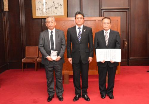 12月23日の天皇誕生日に際して、社会福祉事業御奨励の思召により、天皇陛下から社会福祉法人清風会の特別養護老人ホーム若宮荘に対して、金一封が下賜されることとなり、知事室において伝達式が行われました。