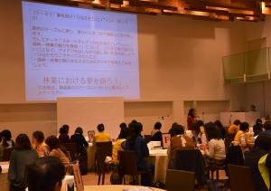 県内で森林・林業に関わりや興味がある女性をメンバーとする、みやざき森林・林業女性の会「ひなたもりこ」が発足し、スタートアップミーティング&キックオフパーティーが開催されました。テーブルミーティングでは各テーブルごとに活発な意見交換がされていました。