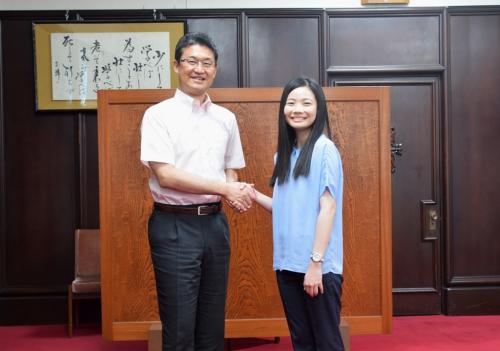 県の国際交流員に着任したゴー・イーリーさん(シンガポール出身)が、河野知事に着任挨拶を行いました。