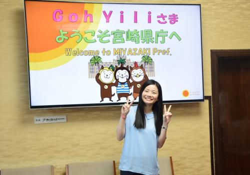 ゴー・イーリーさんは、7月31日から1年間県庁で国際交流イベントの企画・実施や県内の小中学校等を訪問し、母国の文化・習慣等を紹介する「国際理解講座」などの業務を行います。