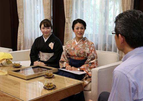 書道家の今井美恵子さんと日本舞踊師範の藤間花童さんが、アートマカオ2019ジャパンパビリオンのオープニングセレモニーに出演(書道と日舞の舞のコラボレーションにより日本の文化芸術を披露)することを報告するため、河野知事を表敬訪問しました。