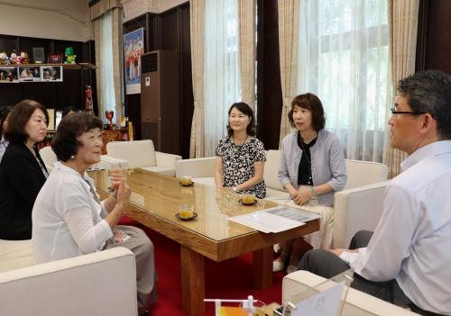 8月24日、25日に石川県金沢市で開催される「第42回全日本おかあさんコーラス全国大会」に九州支部代表として出場する合唱団体のバイオレットコーラスの皆さんが、その活動取組について報告するため河野知事を表敬訪問しました。
