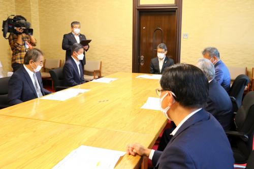 (一社)宮崎県バス協会、(一社)宮崎県タクシー協会および(一社)宮崎県トラック協会の3協会から河野知事に対し、燃料価格の高騰に関する支援策の継続について要望が行なわれました。