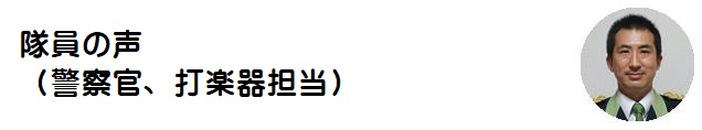 音楽隊員として活動することは、警察広報の最前線の一角としてじかに県民の皆さまと触れ合い、笑顔になってくれるのを一番近くで見ることの出来るとてもやりがいのある仕事です。