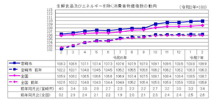 | 生鮮食品及びエネルギーを除く総合指数(令和2年=100) | 109.9 | 数値は原数値 | |