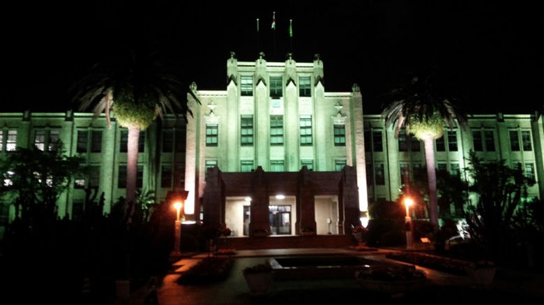 県庁本館庁舎を緑色にライトアップします。